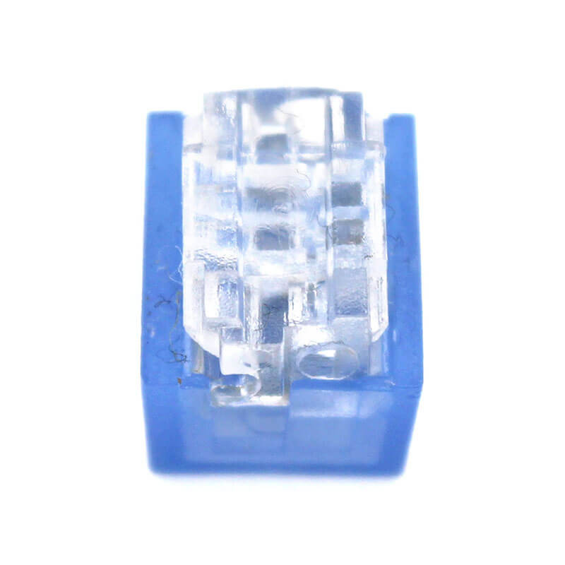 고체 구리 0.7-0.4 mm (21-26AWG) 공기 코어 가득한 케이블에 대한 사전 크림 기능과 함께 밀폐 된 습도에 저항하는 두 개의 와이어 커넥터. 1.27mm ((0.050 ′′) 최대 단열 O.D.